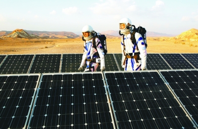在以色列內(nèi)蓋夫沙漠中的火星沙漠研究站,志愿者“宇航員”執(zhí)行“太空任務(wù)”。火星沙漠研究站是在以色列航天局支持下建立起來(lái)的一個(gè)火星模擬基地,位于以色列南部一片沙漠的腹地中。圖為新華社發(fā)