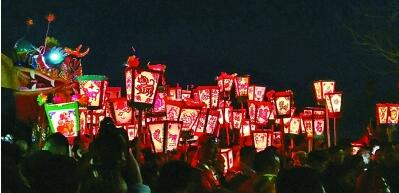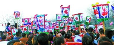 南峪鎮(zhèn)臺頭村的邳神廟會,會期六天。祭祀的邳神,本名邳彤,系東漢光武帝劉秀云臺二十八將之一,在當地民間傳說中被稱為“藥王”。廟會期間,鄰近的很多鄉(xiāng)鎮(zhèn),甚至山西省娘子關、舊關、井溝等地的村民都趕來參會。廟會主要活動有請神、跳神、誦經、踩街、戲劇、馬戲、歌舞、拉花、雜技、社火、旱船、武術、魔術、高蹺等。正日的踩街活動,尤為壯觀。人們用三層木轎抬著邳神像巡游,身著彩服的數十支、逾兩千人的文藝隊邊走邊舞,炮聲、歌聲、吹奏聲震天動地,以此來祈求消災祛病、吉祥平安、風調雨順、人壽年豐。在陜西省鳳翔縣的槐原,農歷正月二十五要舉行一年一度的排燈會。槐原四個村莊的百姓,家家戶戶高舉著自制的排燈,聚集到槐嶺村的女登祠前舉行祭祀活動。民間傳說,女登是炎帝之母,槐原是女登故里,槐原排燈會已有4000年的悠久歷史。