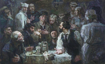 馬克思、恩格斯與工人代表們在一起(中國畫) 劉大為