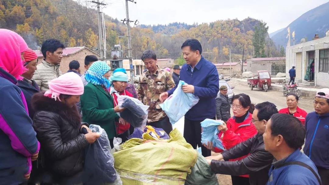 青海省文聯黨組書記、主席班果為扶貧村村民發放御寒衣物