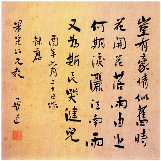 郭沫若是才子,他的書法從前備受推崇,地位極高,他寫得也多,到處可以看見他的題詞墨跡。但看得眼熟了,覺得“郭體”似乎沒有魯迅書法蒼老的風骨,也少一點茅盾書法的峻秀,所以也有人說他的字盛名難符。