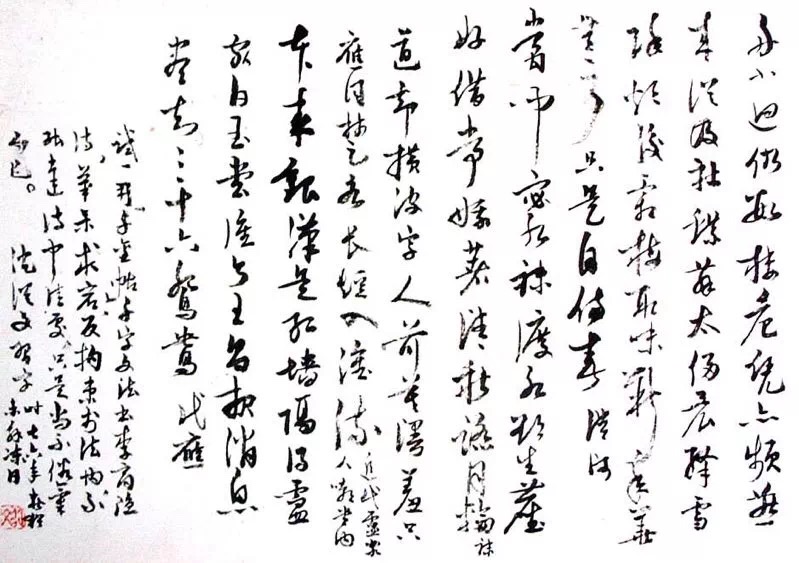 曹辛之認為沈從文的大字草書寫得好,而我卻更喜歡沈從文寫的章草小字。我選了沈從文用小字抄錄李商隱詩歌的一幅作品。這是十多年前的事情了,曹辛之先生也已經作古多年。看到那幅沈從文的書法,使我常常懷念這兩位值得尊敬的文壇前輩。