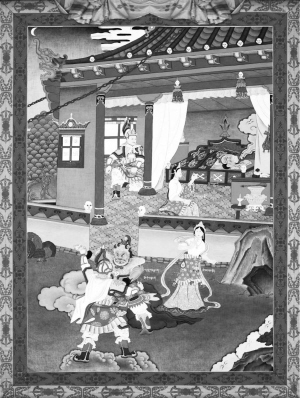 格薩爾和梅薩在黑魔的九尖魔宮相會,二人合力殺死黑魔魯贊。 降邊嘉措供圖