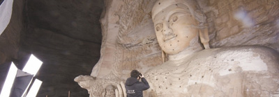 圖為云岡第三窟西后室,數(shù)字化田野數(shù)據(jù)采集現(xiàn)場。