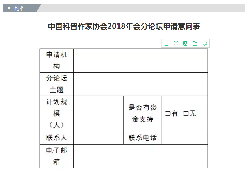 附件2:中國科普作家協會2018年會分論壇申請意向表