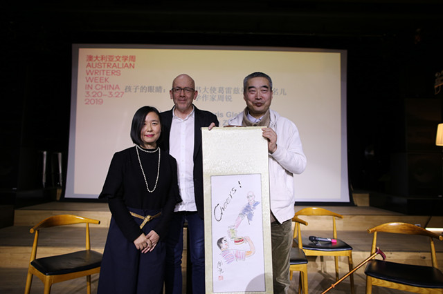 3月23日,在洋溢著春日暖意和文藝氣息的798藝術空間,來到中國參加第十二屆澳大利亞文學周的澳洲童書大使莫里斯?葛雷茲曼與中國兒童文學作家周銳展開了一場關于孩子與故事的對話。本次活動由澳大利亞駐華大使館主辦,中國文學海外推介網站紙托邦承辦,特邀兒童教育作家、童書出版人三川玲主持。