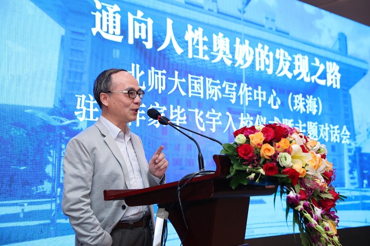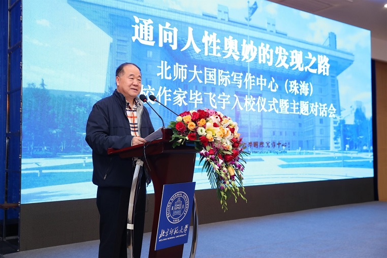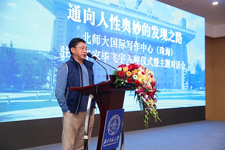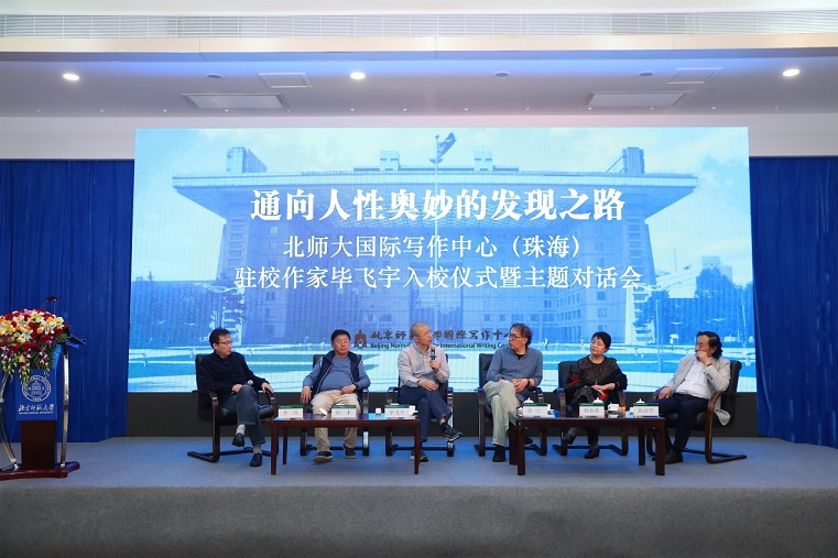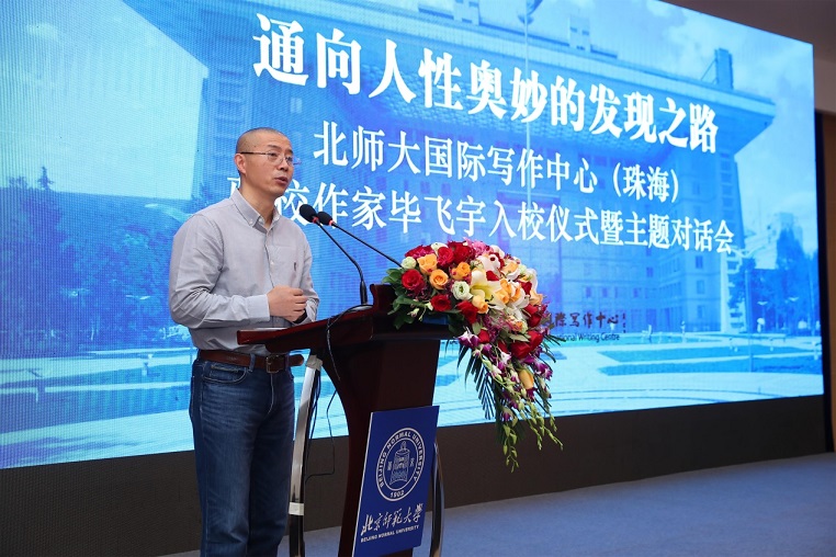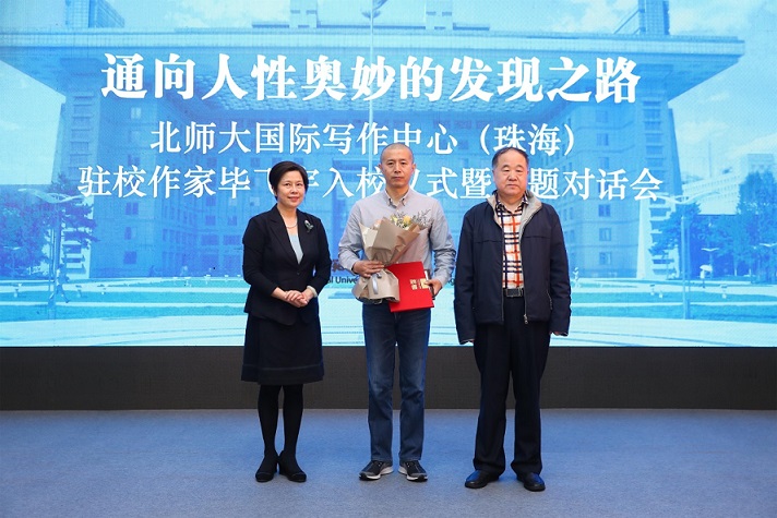 4月14日上午,“通向人性奧妙的發現之路:北師大國際寫作中心(珠海)駐校作家畢飛宇入校儀式暨主題對話會”在北師大珠海校區舉行。自2013年北師大寫作中心引入駐校作家制度以來,先后邀請了賈平凹、余華、嚴歌苓、歐陽江河、蘇童、西川、遲子建、翟永明、格非、韓少功等10位駐校作家,推動了文學教育事業的蓬勃開展。今年,知名作家畢飛宇也加入到駐校作家的行列,在入校儀式上,北師大國際寫作中心主任莫言、珠海分校副校長傅愛蘭為畢飛宇頒發聘書,儀式由北京師范大學國際寫作中心執行主任張清華主持。