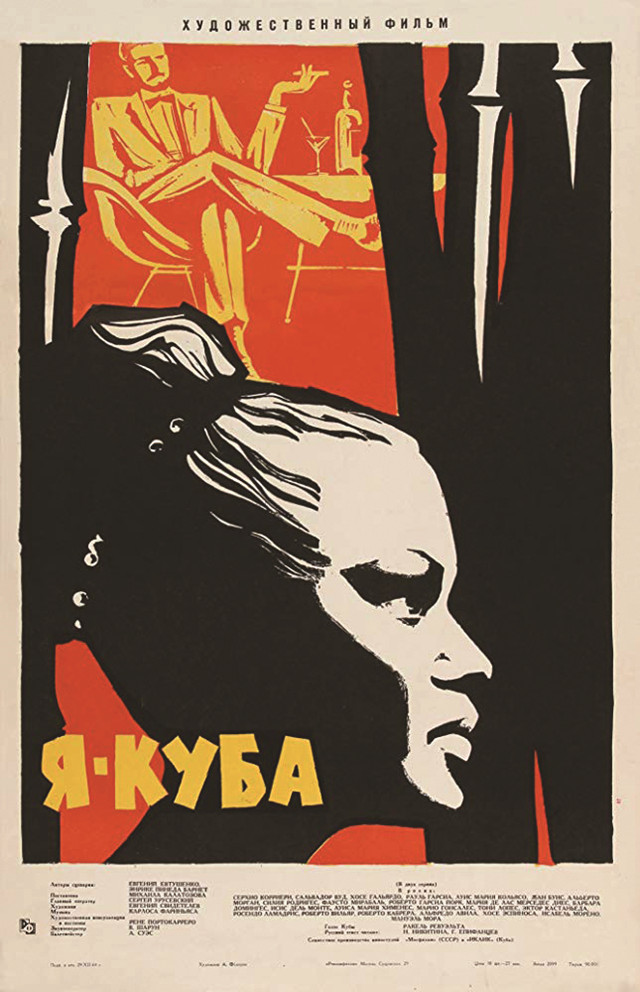 1957年,蘇聯“解凍”初期,卡拉托佐夫執導的《雁南飛》在第11屆戛納電影節上斬獲金棕櫚獎,他的“詩電影”自此在西方影史留名。《我是古巴》的兩位編劇也都是詩人,古巴人恩里克·巴尼特(Enrique Pineda Barnet)擔任此片編劇時還不到30歲,日后他主要從事導演工作,同時也創作詩歌;另一位則是“解凍”時期紅極一時,如今已經差不多被遺忘的詩人葉甫根尼·葉甫圖申科。
