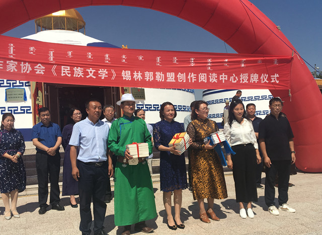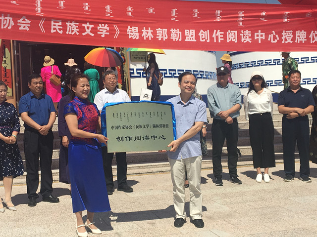 活動期間,在納·賽音朝克圖紀念館舉行了《民族文學》錫林郭勒盟創作閱讀中心授牌儀式。《民族文學》向錫林郭勒盟文聯和正藍旗文聯捐贈由民族文學雜志社編輯的、分別由作家出版社和光明日報出版社出版的《中蒙文學作品選集》和《〈民族文學〉精品選》。