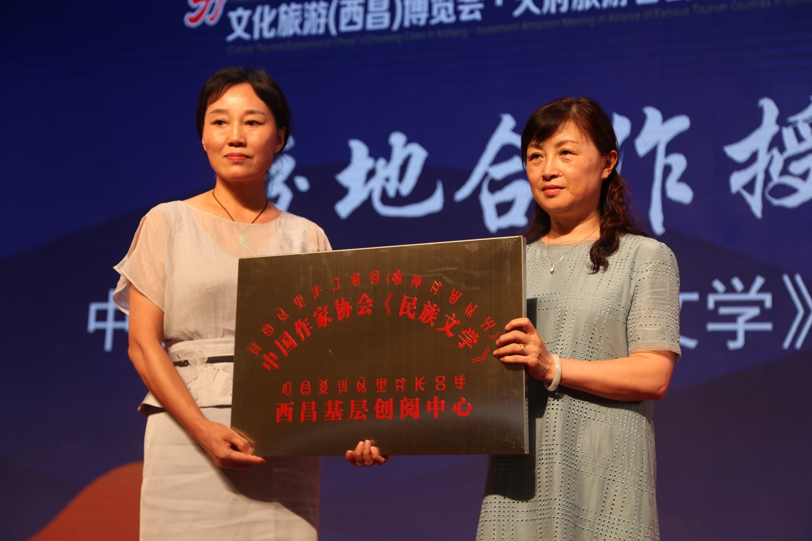《民族文學》主編石一寧為《民族文學》西昌創意寫作中心授牌
