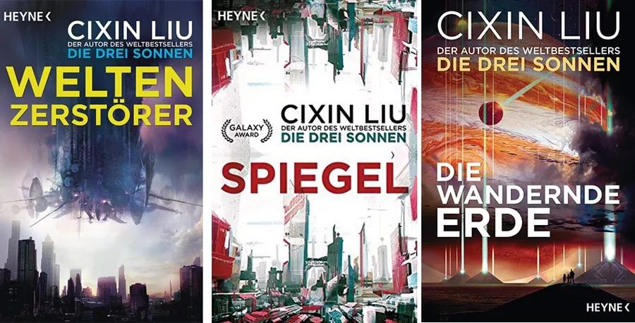 從左到右依次為:《三體》(Die drei Sonnen),《三體II?黑暗森林》(Der dunkle Wald),《三體III?死神永生》(Jenseits der Zeit)