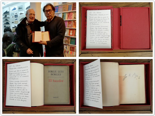 2017年9月在阿根廷布宜諾斯艾利斯,博爾赫斯學(xué)生卡洛斯.R.路易斯將博爾赫斯簽名本《創(chuàng)造者》一書(shū)贈(zèng)與西川