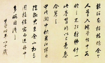此跋竟采用扇面形式,有一定創意。用筆輕細飄逸,結字靈動,風格恬淡自然。