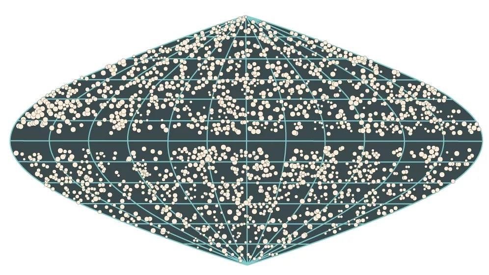 在這幅包含了從3億~10億光年遠的天體的圖中,可以明顯看出星系是均勻分布的。唯一不均勻的地方是靠近中線的間隙,那是因為天空的這個區(qū)域被銀河擋住了。這張圖片由普林斯頓大學的邁克爾·施特勞斯(Michael Strauss)依據紅外天文衛(wèi)星的數據制作。