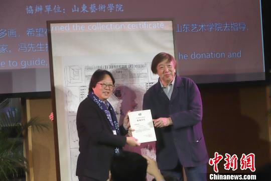 馮驥才向王力克頒發(fā)捐贈證書。 張道正 攝