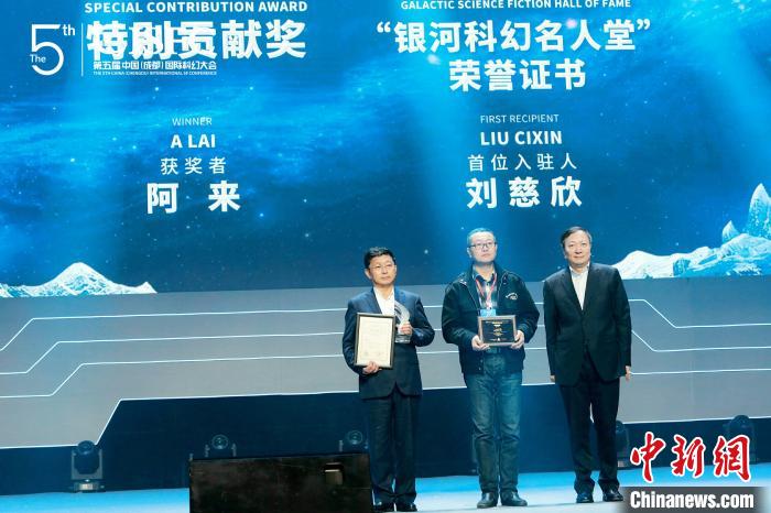第五屆中國(成都)國際科幻大會22日在成都開幕。記者從現場獲悉,阿來獲第30屆銀河獎“特別貢獻獎”,劉慈欣入選“銀河科幻名人堂”。