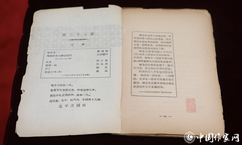 在《沉鐘》雜志第二十六期卷首,引用了16世紀的英國詩人、劇作家克里斯托弗?馬洛(Christopher marlowe)的話——