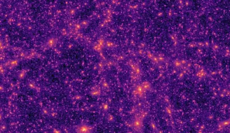 圖1: 宇宙學(xué)家們用超級計(jì)算機(jī)模擬的宇宙中暗物質(zhì)分布圖景,其中亮度表征著當(dāng)?shù)氐陌滴镔|(zhì)密度,亮點(diǎn)為高密度區(qū),星系和星系團(tuán)將在這些高密度區(qū)中形成。圖片來源:https://phys.org/news/2019-09-artificial-intelligence-probes-dark-universe.html