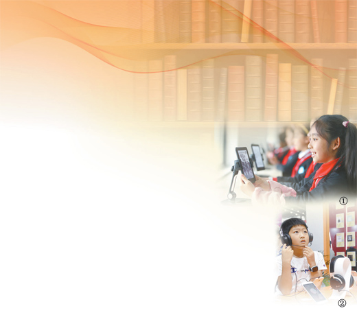 圖①:讀者體驗電子閱讀器閱讀。 影像中國 圖②:讀者體驗聽書。 人民視覺