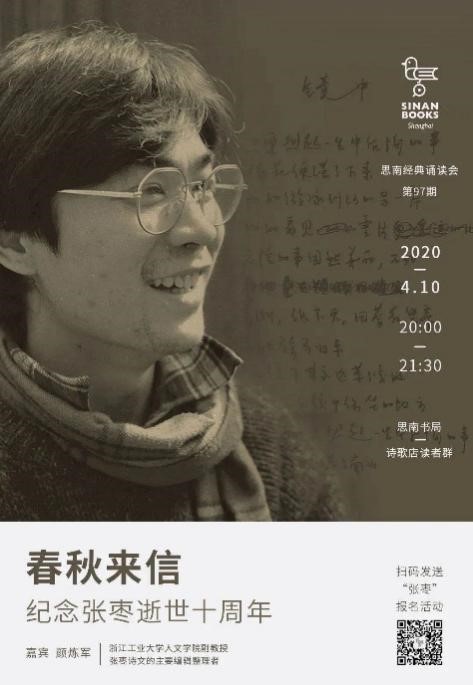 “張棗是個好老師。”多年以后,顏煉軍已從中央民族大學(xué)博士畢業(yè),也走上講臺,成為大學(xué)教授。2020年4月10日,在思南書局組織的“春秋來信——張棗逝世十周年”的線上紀(jì)念活動中,顏煉軍作為嘉賓出席,與一群來自五湖四海的讀者共同懷念他的老師張棗——一位“中國當(dāng)代詩歌的奇才”(《悲情往事》,北島)。