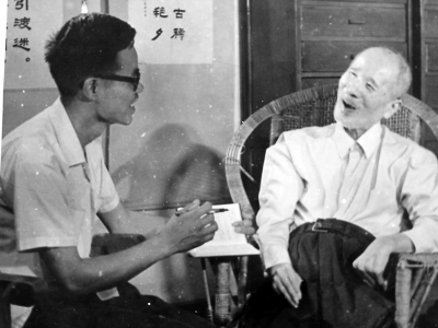 1978年葉永烈(左)采訪高士其,為高士其寫了長(zhǎng)篇傳記《高士其爺爺》。
