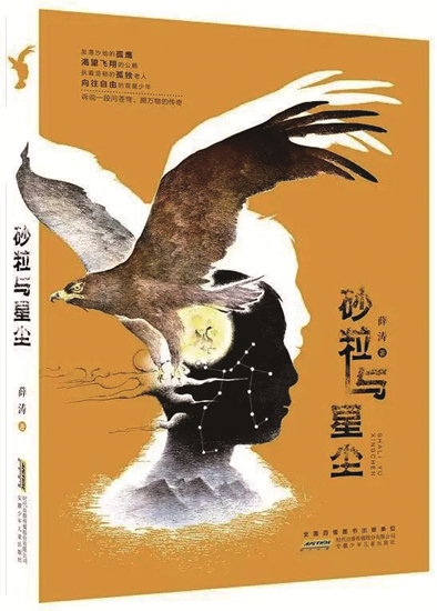 長篇小說《砂粒與星塵》的故事,發生在中國東北方的沙漠腹地,一個人煙寥寥、幾乎成為“空巢”的村落烏糧。小說的幾個主角,既有人物,也有動物。人物有年老的“鷹把式”砂爺,砂爺的親生兒子、8年前駕鷹出走、從此杳無音信的少年砂粒,還有8年后從觀星團中走散、迷失了方向而滯留在烏糧的觀星少年星塵;動物里有一只海東青(虎子)、一只被遺棄的公鵝(公爵)、一條獨狼(狼王)和它的狼群,還有一群羊。于是,人與動物、動物與動物,在烏糧這個人跡罕至、即將被沙子掩埋的荒村里,上演了一場殘酷而持久的、驚心動魄的較量。生與死、恩與仇,正義與陰險、追尋與迷失,勇毅與怯弱、希望與絕望,還有新生與守舊、救贖與自救,都在一場場緊張的對峙與生死較量中,得以展開和呈現……
