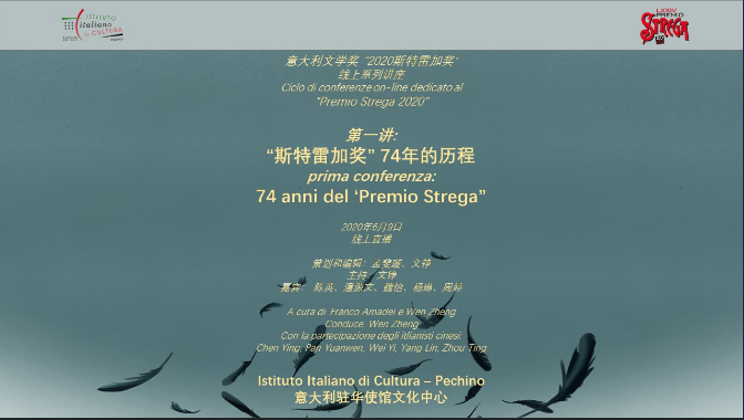 6月9日,由意大利使館文化中心主辦的意大利文學“2020斯特雷加獎”線上系列講座第一講—— “斯特雷加獎”74年的歷程在線上開講。到場嘉賓除意大利駐華使館參贊孟斐璇外,還有意大利語言文學學者、翻譯家文錚、魏怡、李婧敬和潘源文。不能到現場的陳英、楊琳、周婷以連線的方式參與講座。講座由文錚主持。