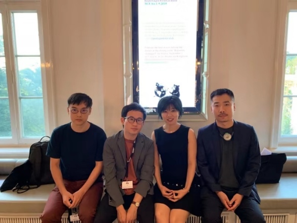 第一屆全球真實(shí)故事獎(jiǎng)中國區(qū)入圍者與評(píng)委之一吳琦在活動(dòng)現(xiàn)場合影,左起:劉子超、吳琦、巴芮、杜強(qiáng)