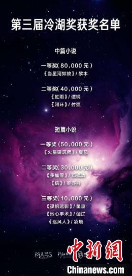 圖為第三屆冷湖獎獲獎名單。 孫睿 攝