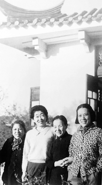 1950年代初期,黃慶云(右一)與冰心(右二)、廖夢醒(左一)、日本作家松岡洋子(左二)