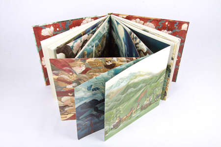澎湃新聞:作為外行,我在《木蘭辭》繪本中看到了中國傳統繪畫的藝術風格和手法,比如祥云、廣袖,不過似乎也看到了一些外來的元素和西方技法,比如頗似浮世繪的浪花,以及北歐插畫的感覺,這種印象對嗎?