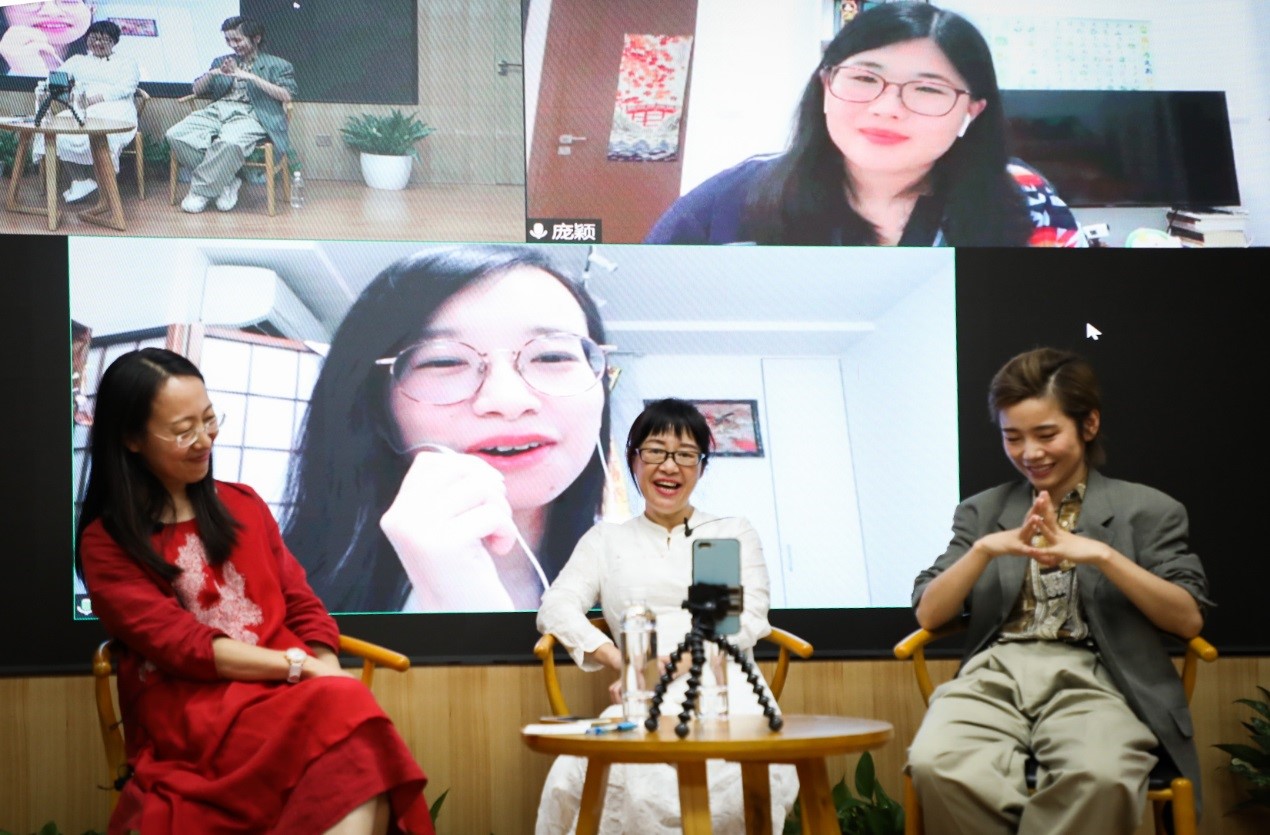 龐穎選讀了《我還是想》。她談到,“余老師那種非常直接的表達,不管是在詩里還是詩外,都是非常難得的。她的詩讓我看到了以前沒有看到的世界?!泵摽谛阊輪T池子也參與了現(xiàn)場連線,和余秀華互動,開啟一場歡樂秀。