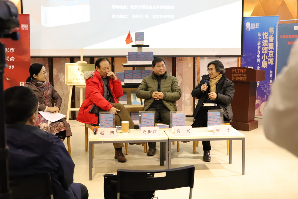 近日,由《詩刊》社與廣西師范大學出版社聯合推出的《新譯外國詩人20家》問世,并于1月6日在北京外研書店東升科技園店舉辦了首發儀式。《詩刊》主編李少君出席并致辭,與《詩刊》副編審趙四、翻譯家趙振江、翻譯家高興、翻譯家樹才以及北京外研書店總經理付帥共同為《新譯外國詩人20家》新書揭幕。