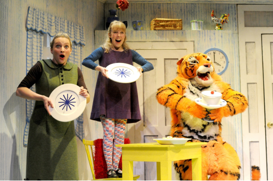 圖為根據同名繪本改編的、獲得英國戲劇奧利佛獎最佳家庭娛樂劇目提名的兒童繪本劇《老虎來喝下午茶》,圖片來源于劇照