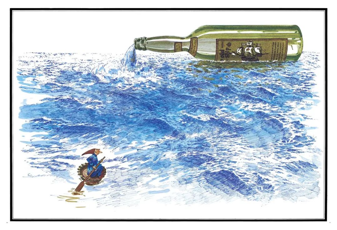 安野光雅曾說:“我小時候,在腦海里想象‘世界是圓的’這個概念——整個世界就像一個里外翻過來的橡皮球,里面住著各個洲的人。當然,這只是一個小男孩異想天開,但這樣的想象,也是一種觀察世界的角度,是我所有作品的源泉。”