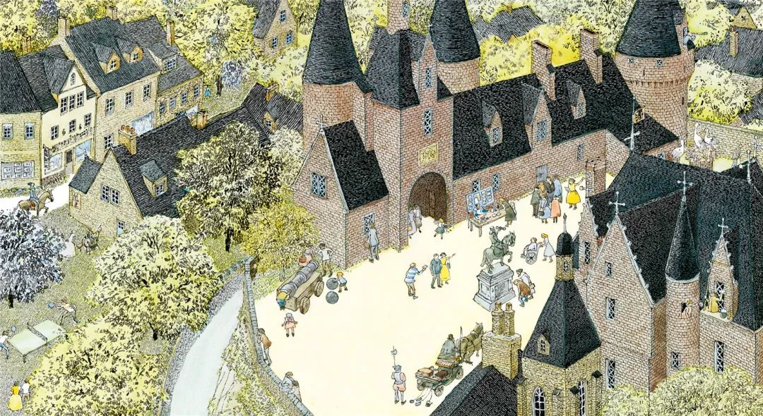 1977年《旅之繪本》系列第一冊“中歐篇”出版時,安野光雅51歲;2018年《旅之繪本IX》(瑞士篇)出版,此時,安野光雅已經92歲,他用半生的時間繪制了一幅動人的世界長卷。在這幅畫卷中,他以鳥瞰的視角描繪出了東西方獨具特色的風景,在風景之中,隱藏著更為豐富有趣的內容:文學名著、名人畫作、經典電影、建筑古跡……