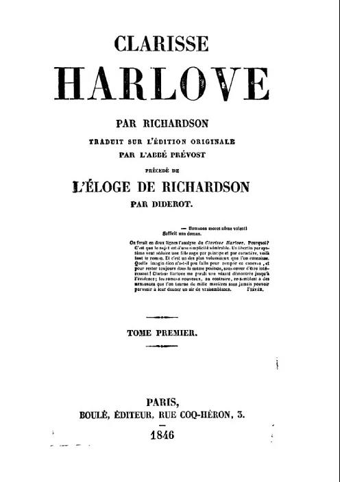 1846年法文版理查遜小說《卡拉麗莎》,附狄德羅的《理查遜禮贊》