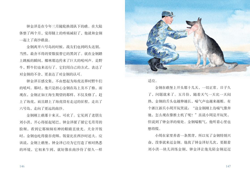 《藍(lán)海金鋼》在文本和插圖上,都盡可能地做到兼顧嚴(yán)謹(jǐn)與美感。小到臂章、軍銜和軍服,大到全書情節(jié)的安排、情感的推進(jìn)回旋,無不在編輯關(guān)注的范圍。該書的責(zé)任編輯在編輯加工過程中曾多次向作者以及部隊(duì)?wèi)?zhàn)士請(qǐng)教,盡力還原事件發(fā)生的時(shí)代、時(shí)段,當(dāng)時(shí)的環(huán)境條件,每個(gè)情節(jié)、每張插圖、每個(gè)術(shù)語,都與作者認(rèn)真討論,經(jīng)作者親自確認(rèn)。為了全書的不到20張插圖,責(zé)編前后查找了幾千張相關(guān)的照片,中國軍網(wǎng)、南海研究論壇、解放軍新聞傳播中心等網(wǎng)站。雖然是文學(xué)作品,但在知識(shí)層面不可隨意,這部小說很可能幫孩子建立起對(duì)海軍、南海和軍犬的印象,甚至是孩子接觸相關(guān)領(lǐng)域的第一本書。