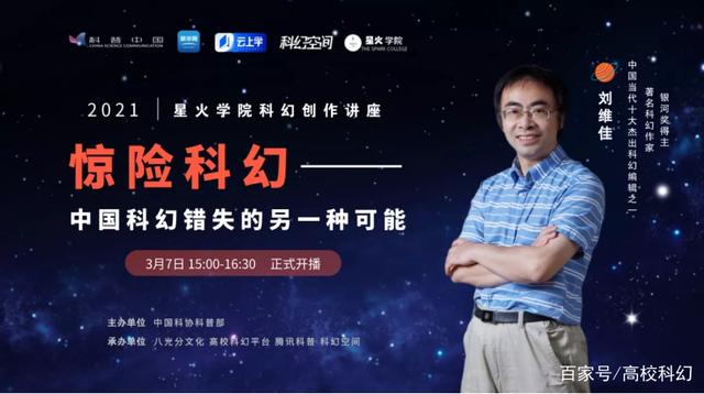 2021年3月7日下午3點,“驚險科幻——中國科幻錯失的另一種可能”作為星火學院第二屆創作訓練營第一期公開課程通過新華網客戶端直播開講,共吸引97.9萬人觀看。本次直播課由銀河獎得主,科幻作家,科幻編輯劉維佳老師主講,向我們展現了中國科幻的另一種可能:在八十年代的中國,中國科幻事業方興未艾之時代,以葉永烈為首的科幻作家們于晦暗中尋覓出的道路。