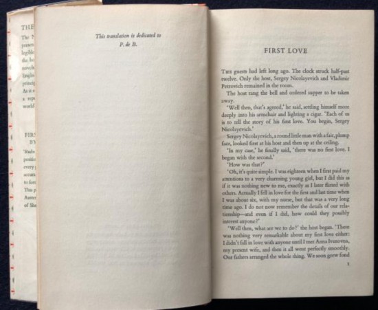 伯林英譯的《初戀》終于在1950年5月出版了。果然在他說的那個位置排了一句獻辭。