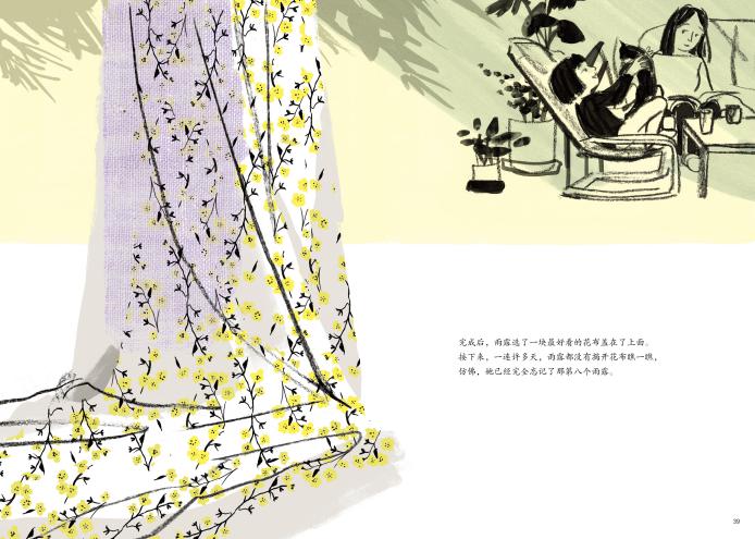 作家曹文軒和畫家蘇西·李這次合作的起源要追溯到2015年上海國際童書展,蘇西·李的韓國出版方讀書熊總編輯禹智英應邀參加展覽,接力出版社總編輯白冰與她一見如故。當時中國原創圖畫書正值興起,接力出版社希望開啟一種全新的國際合作模式,白冰提議今后可以讓中國作家和韓國畫家聯合創作,雙方一拍即合。2016年出版社邀請到曹文軒作文,讀書熊邀請到蘇西·李作畫,希望正式開啟這種合作。特別巧的是,兩位作家2016年同時入圍了國際安徒生獎。在2016年博洛尼亞童書展期間,國際安徒生獎頒獎前夕,兩位作家終于相見,從中文稿件到韓文文稿,從風格設定到畫面分鏡,編輯們多次與作家和畫家溝通修改。從2015年提議,到2020年出版,《雨露麻》歷時五年打磨而成。