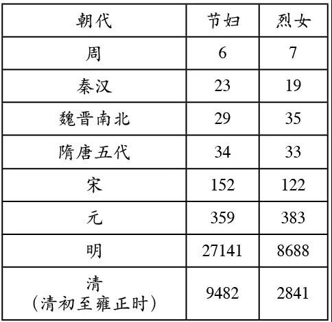 東周至清前期節(jié)婦、烈女?dāng)?shù)量變化表