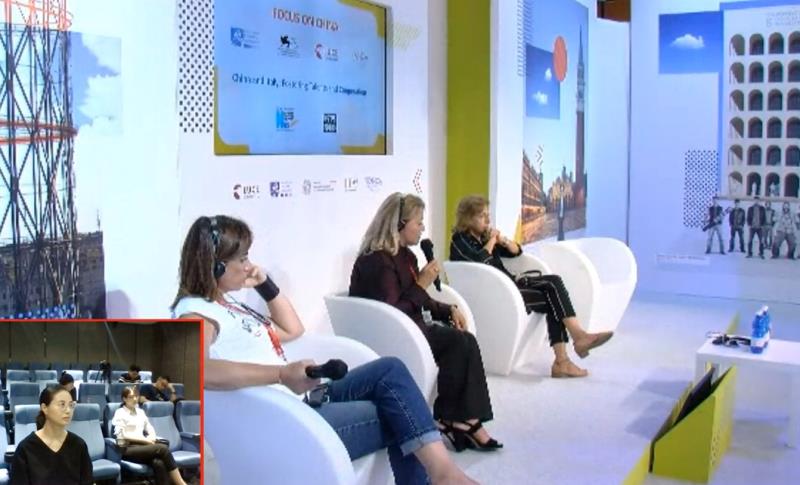 9月5日,中意雙方多位嘉賓在本屆威尼斯電影節“聚焦中國”活動上共同聚焦青年影視人才的培養,深入探討疫情背景下的國際合作。(圖為視頻連線截圖)