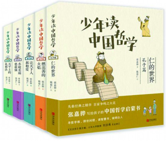 張嘉驊著、陳裕仁繪的《少年讀中國哲學》系列叢書近期由青島出版社出版。這套叢書是作家張嘉驊繼《少年讀史記》《少年讀西游記》之后,耗時三年,潛心為孩子打造的一套中國哲學啟蒙書。這套書分為仁的世界(孔子篇)、燃出善的火焰(孟子篇)、讓天下人都相愛(墨子篇)、水最柔弱也最強(老莊篇)、天平上的禮和法(荀韓篇)幾個部分,匯先秦經典之精華,集百家爭鳴之火花。這套書以明白曉暢的語言、簡潔精當的闡釋,向讀者系統地闡發揭示了孔子、孟子、墨子、老子、莊子、荀子和韓非子等先哲的哲學思想精華,打破哲學“艱澀玄乎”的偏見及文言的閱讀壁壘,讓孩子能夠輕松看懂百家爭鳴,在尋哲學根、探世間理的過程中愛上智慧之學,在捧腹大笑之余思考背后的道理。