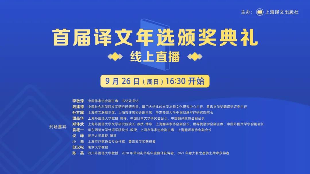 2021年9月26日,專家評審團將討論決定首屆“譯文年選”獲獎作品,并視頻直播頒獎典禮。屆時,譯文君會提前發(fā)布直播二維碼,誠邀各位讀者在線觀看。