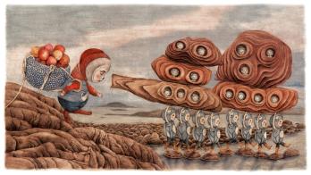 獲得本屆插畫展年度大獎的系列作品《神秘世界之旅》由德國插畫師索尼婭·達諾夫斯基(Sonja Danowski)創作。作品描繪了一個神秘的世界,那兒有奇異的植物、嶙峋的石質房屋以及一群神奇的生物。這群生物雖然大小不一、本領各異,卻懂得互惠互助,共同創造了一個精彩、有趣的宜居家園。作者索尼婭還曾為曹文軒和方素珍等著名中國兒童文學作家的圖書創作插畫。