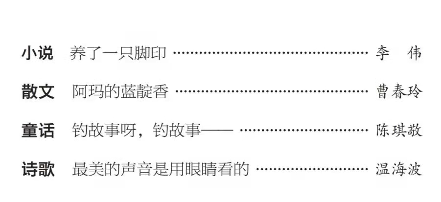 小說、童話、寓言、散文、詩歌、幼兒文學(xué)均可參評(píng)。參評(píng)作品字?jǐn)?shù)最長不超過1.5萬字。每位作者參評(píng)作品只限一篇。