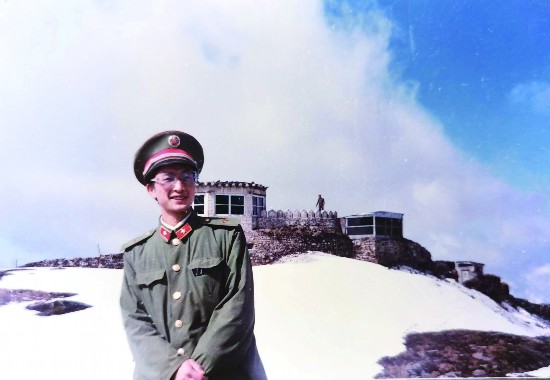 作者曾有情1985年在中國西藏邊境留影,身后建筑為外軍(印軍)哨所,與我軍哨所相距不到30米。
