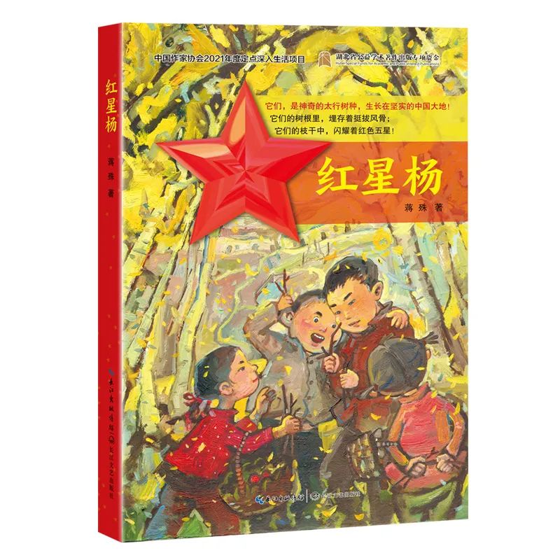 蔣:非常感謝你對作品的準確定位,每每聽到這樣的提煉,就特別佩服評論者的精準視角。其實我初始寫作時是亂的,除了清晰的“紅星楊”,一切都是模糊的,結構更是,始終不知該如何布局。但經過“紅星楊”一次又一次在腦中成長,從發芽到落下一地黃葉最后被大雪覆蓋,它們的生命與精神也滲進我心里,再加上期間與幾位老師的交流請教,最終三易其稿,終有了今天的面目。這本書的主角是孩子們,所以必須以孩子們為主線,而紅星楊只是他們于玩耍時無意當中發現的,成了屬于他們的秘密,這就有了神秘色彩。然而只讓他們固守這個秘密,也只是小孩子之間的游戲,因此這秘密必須觸碰另一個群體,那就是成年人。對我黨地下工作者與八路軍戰士來說,那一村一墻的“紅五星”有一種強烈的象征,這些圖案讓他們驚喜又擔心。然而這還不夠,兩撥互相喜愛“紅五星”的人,起不了沖突,因此敵人來了,這就是正在太行山中入侵的日軍,這耀眼的“紅五星”刺了他們的眼,于是展開大鏟除。這骨子里刻著“五角星”的“紅星楊”,便不再是單純的樹的形象,是一種象征,是人們的精神支柱與信仰,更是一種無法戰勝的力量。其實這也是我在多年以后,以兒童小說的方式把“紅星楊”推上前臺的最根本原因。在太行山人心里,“紅星楊”就是這樣一種有意義的存在。