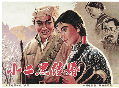 在延安文藝座談會的影響下,作家趙樹理于1943年創(chuàng)作完成短篇小說《小二黑結婚》。1964年,由北京電影制片廠根據(jù)該小說改編的同名電影上映,以電影的形式重溫了抗戰(zhàn)時期青年小二黑和小芹為追求婚姻自由,在黨的關懷下沖破封建家長阻撓、結為夫婦的故事。電影《小二黑結婚》海報由著名軍旅畫家江平先生繪就。海報承襲了原著及影片活潑、清新的格調,富有質樸、濃郁的山西鄉(xiāng)土氣息,凸顯出解放區(qū)進步青年的形象。